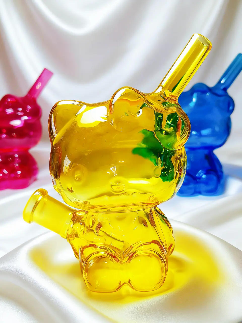 Step into the future of cute with this bold 3D Hello Kitty mini bubbler, featuring a stunning electroplated finish in vibrant neon shades. The reflective surface catches the light from every angle, making the iconic character shimmer in brilliant pinks, yellows, and blues. This artsy statement piece combines a clever integrated design with a polished, high-tech glow that turns a classic collectible into a modern masterpiece.