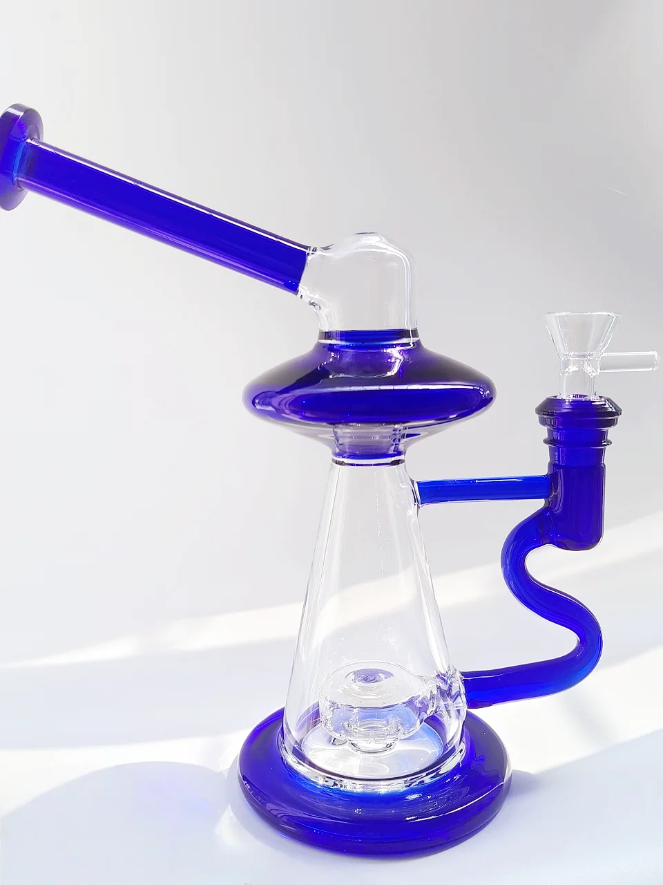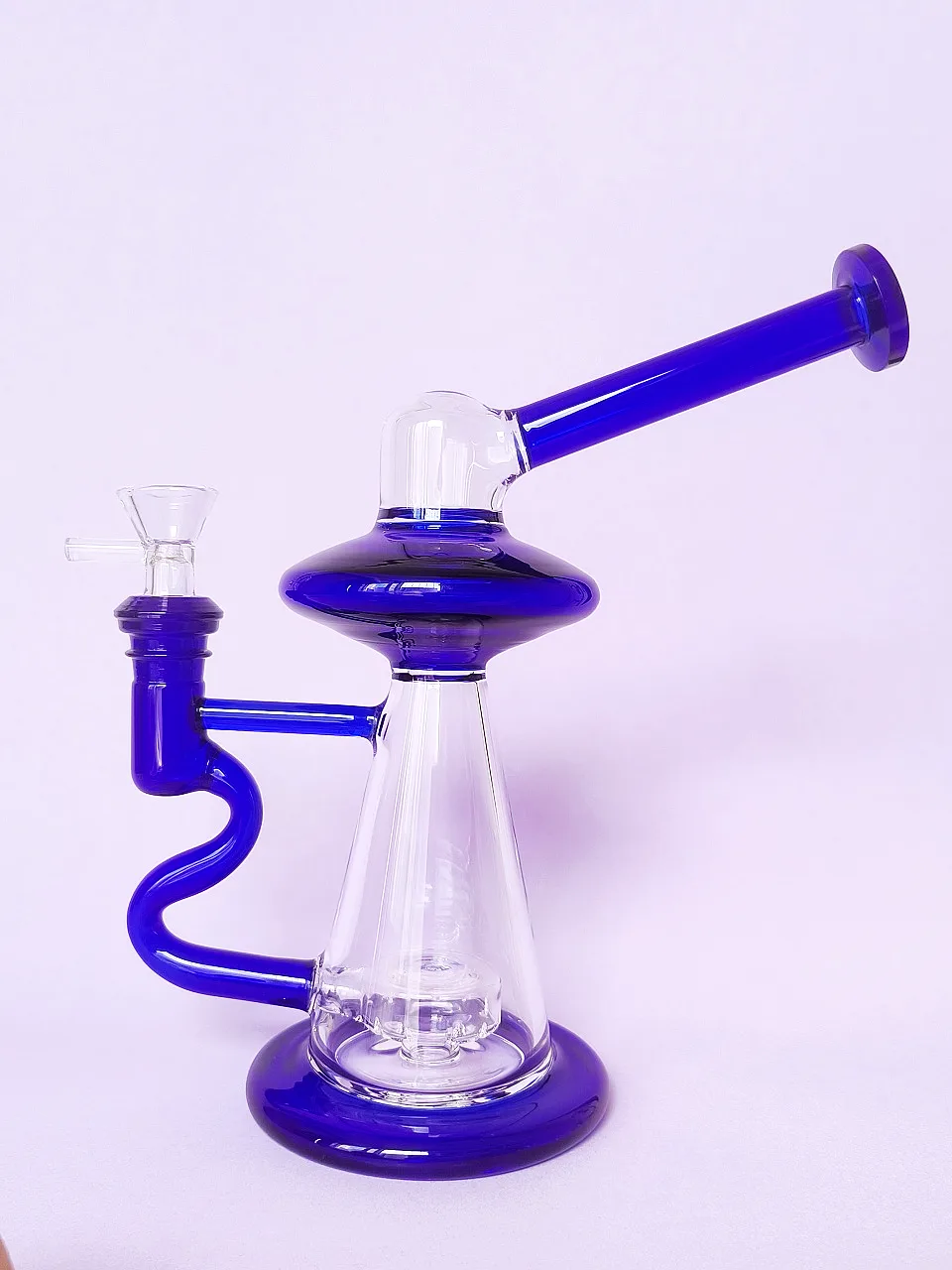 Ready to level up your session? Meet the Sky Blue UFO Nebula Bong—a piece that combines cosmic aesthetics with high-performance filtration. Featuring a unique UFO-style top and vibrant sky-blue accents, this bong looks like it arrived straight from another galaxy. The crystal-clear borosilicate body lets you watch the smoke swirl through the chamber, while the bold blue rim and base provide a clean, modern edge that stands out on any tabletop.