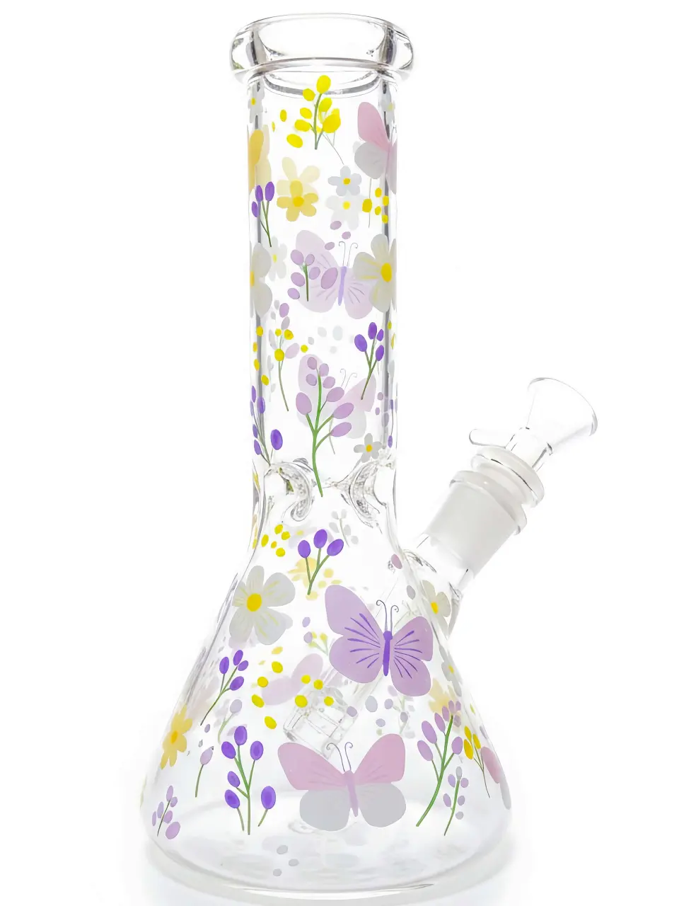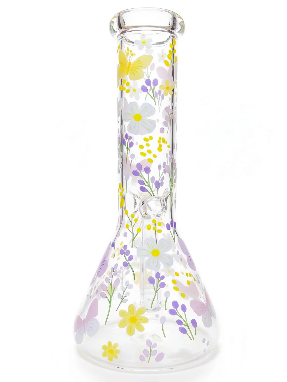Daisy & Butterfly Beaker Glass Bong | Pastel Garden