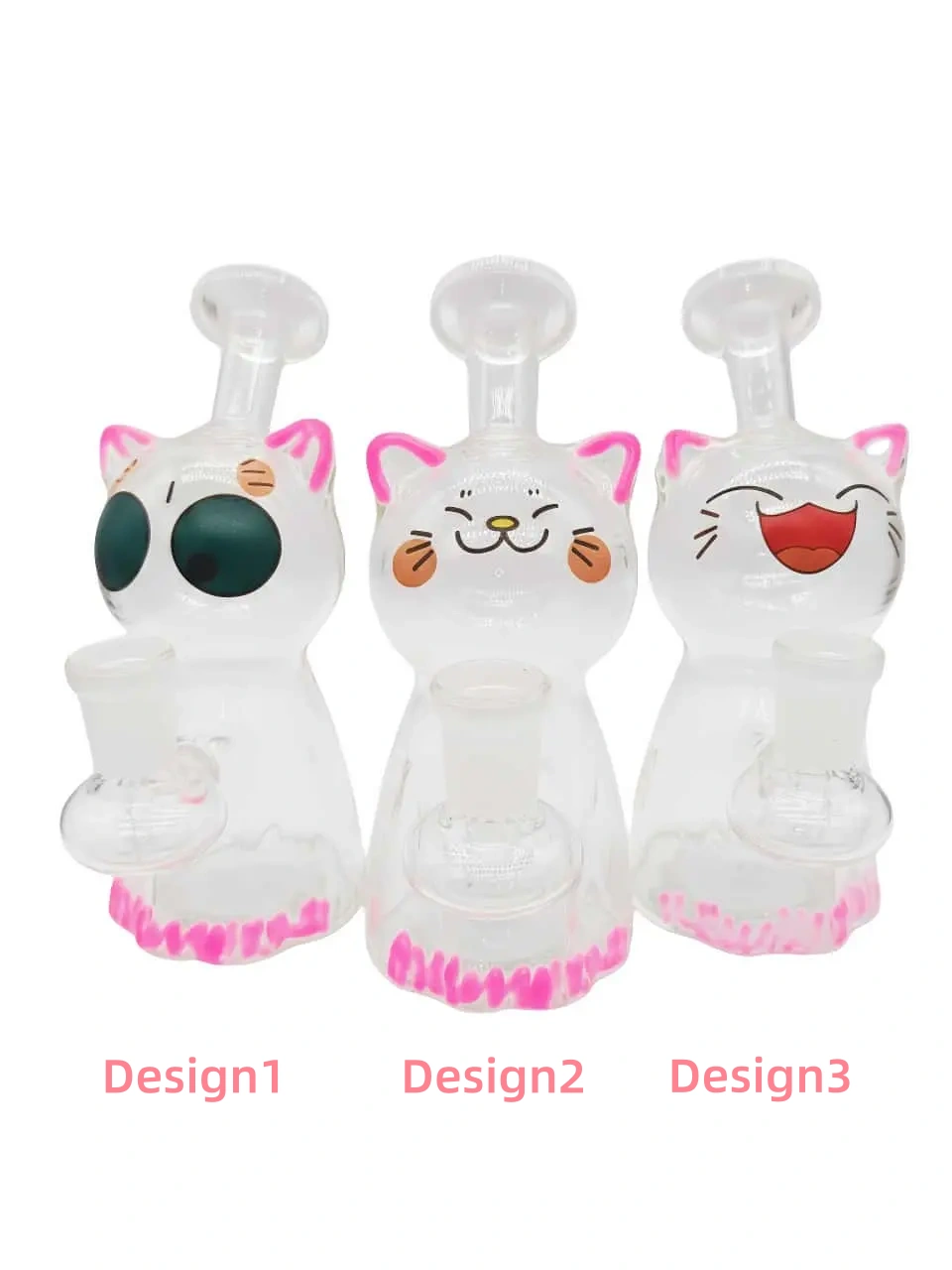 Hand-Painted Cat Expression Glass Bubbler Bong