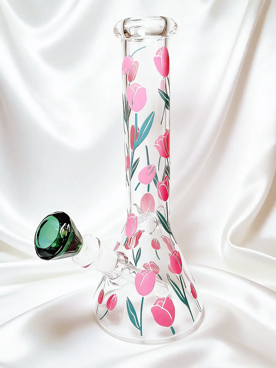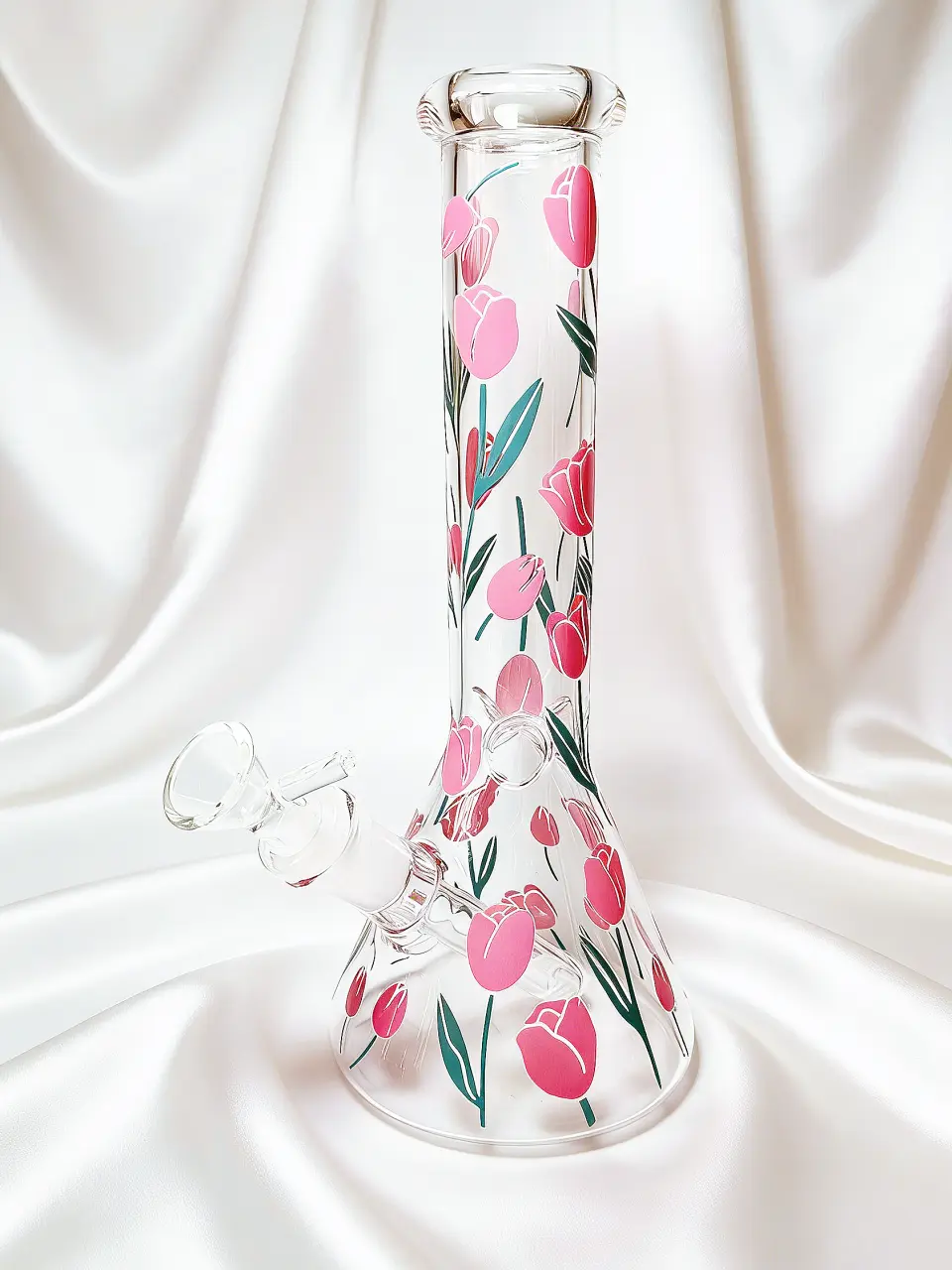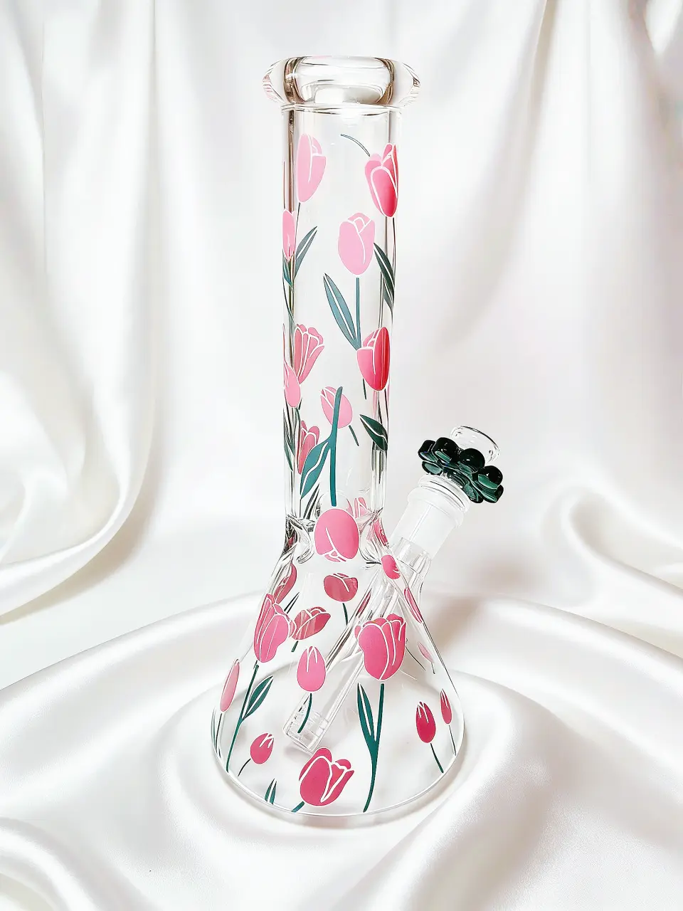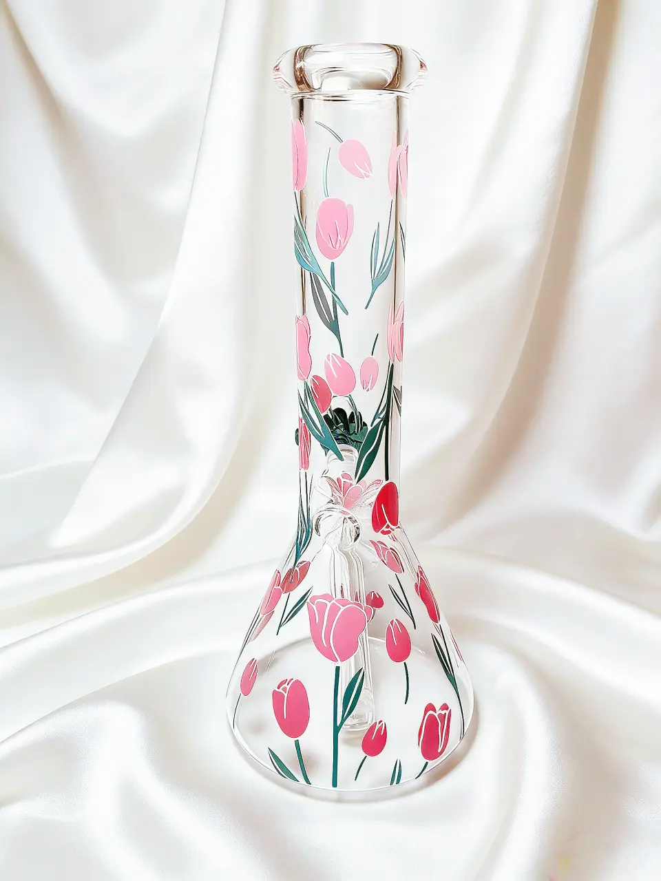 This 10-inch glass bong is wrapped in soft pink tulips and fresh green stems, creating a look that feels elegant, romantic, and full of life. The floral pattern flows beautifully around the clear glass body, like holding a freshly picked bouquet in your hands. Light, graceful, and effortlessly charming—it’s the ultimate piece for spring lovers and those who appreciate a botanical touch.